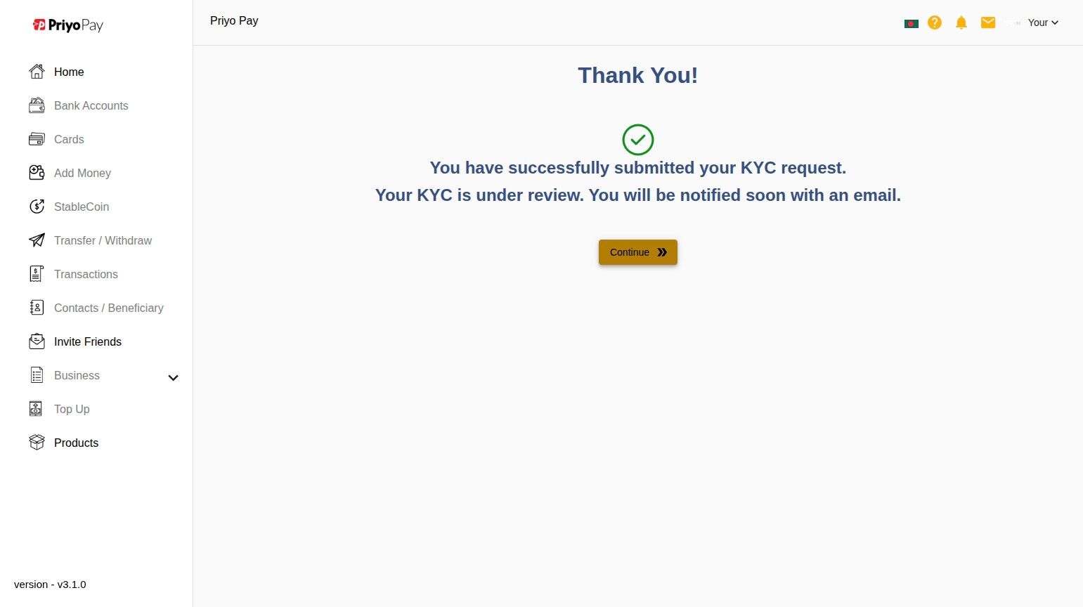 37\. After Receiving the Confirmation Email, Login to Your Priyo Pay Account & Go to "Home"